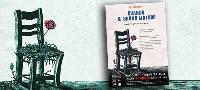 Ortona – Dopo gli straordinari successi ottenuti nei più importanti teatri abruzzesi, tra cui il Teatro Circus di Pescara, Teatro Marrucino di Chieti, Teatro Maria Caniglia di Sulmona, Teatro Fenaroli di Lanciano e Teatro Comunale di Teramo, lo spettacolo teatrale “QUANDO IL GRANO MATURÒ | storie di gente r-esistente” prodotto da CuntaTerra andrà in scena presso lo storico Teatro Tosti di Ortona, domani giovedì 25 aprile alle ore 21.00.