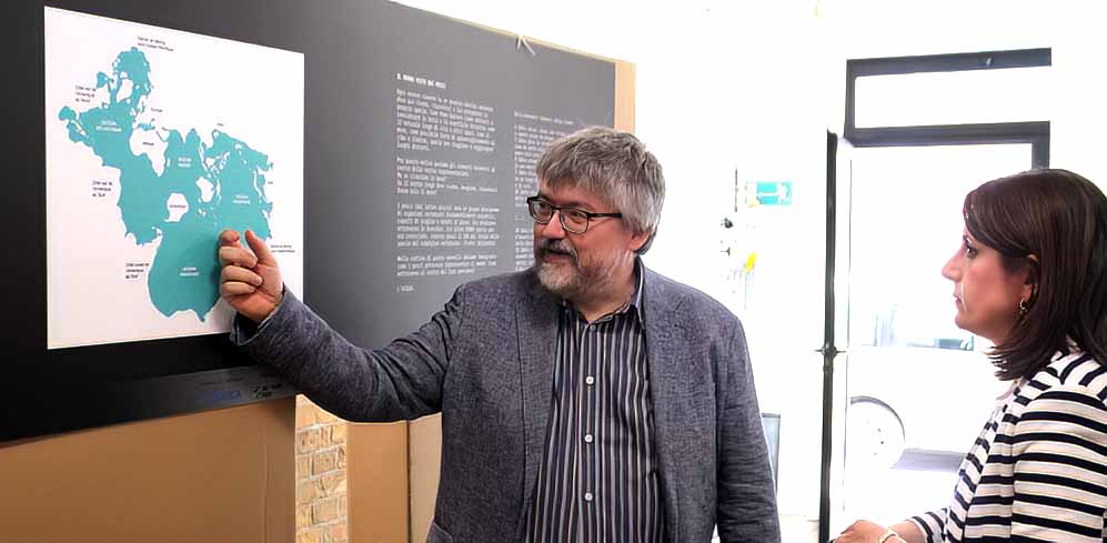 Curata da Andrea Attilio Grilli e realizzata dallo studio “Mimapa design farm” (Matteo Cota, Paola D’Agata, Michela Ricci), l’esposizione è un percorso tra geopolitica e storia ricco di spunti per osservare la realtà da molteplici punti di vista. C’è quindi il mondo visto dalla Cina, dalla Russia, dai cavi marini del telegrafo, dai nodi della prima rete internet. E poi ci sono oggetti di uso quotidiano, che rappresentano però un mondo intero per microbi e batteri. All’inaugurazione il sindaco Chiara Trulli, l’assessore Nada Di Giandomenico, i consiglieri Alberto Bartoli, Marzia Damiani, Angela Scurti.