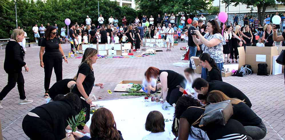 Spoltore – Gli alunni all’ultimo anno della scuola dell’infanzia, istituto Comprensivo di Spoltore, hanno dato vita ieri sera a Signs in The Street, un momento educativo espressivo musicale dove le famiglie, seguite dai docenti con la partecipazione di Rosanna Buono (rappresentante Usr ambito IV Pescara-Chieti), hanno mescolato vari linguaggi espressivi per realizzare lavori sotto gli occhi della comunità: genitori vestiti in nero e bambini in bianco, la piazzetta Rosa di via Basilea a Villa Raspa si è riempita di balli, pitture ed entusiasmo.