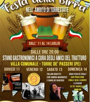 Torre de’ Passeri. Quattro giorni di appuntamenti a Torre de’ Passeri con la Festa della Birra. Dall’11 al 14 luglio nella Villa Comunale ci sarà spazio per assaggiare alcune tra le migliori birre del territorio. Non mancheranno gli spettacoli ad accompagnare i visitatori degli stand.