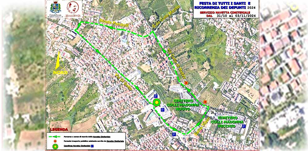 Il servizio sarà assicurato da dopodomani, giovedì 31 ottobre, fino a domenica, 3 novembre, garantendo 33 corse giornaliere, ogni 15 minuti, dalle ore 9 alle 17, partendo dal capolinea all’interno del parcheggio della Delegazione Comunale di Pescara Colli, tra il supermercato Conad e Acqua e Sapone, per poi seguire questo percorso: rotonda Via Di Sotto – Via Di Sotto – Salita Tiberi – Strada Colle Di Mezzo – Strada Pandolfi – Via Di Sotto – Rotonda Via Di Sotto. “E’ il terzo anno che attiviamo questo servizio, che ci consente di risolvere l’annoso problema della scarsità dei parcheggi, specie nella zona nord”, ha detto Carota mettendo in evidenza che il servizio è possibile grazie alla Tua, per la disponibilità del bus, ma le spese sono a carico del Comune. “Vorremmo istituire lo stesso servizio anche a San Silvestro ma lì ci sono delle questioni legate alla viabilità che al momento non possono essere superate”.