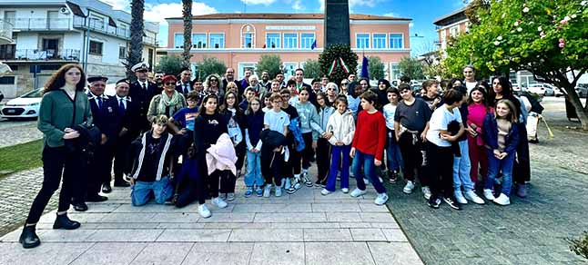 Martinsicuro – La cerimonia commemorativa si è svolta la mattina del 4 novembre in Piazza Cavour, con la partecipazione delle forze dell’ordine, degli amministratori comunali, dell’Associazione Nazionale Marinai d’Italia e dei comitati di quartiere. Presenti anche gli studenti delle classi 1D e 1B della scuola secondaria di Martinsicuro, accompagnati dalla dirigente scolastica, Barbara Rastelli, e dai loro docenti.