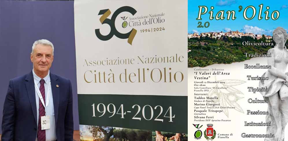 “Pian’Olio ha sempre rappresentato un momento importante per valorizzare l’eccellenza del nostro olio extravergine, vero ambasciatore dei valori e delle tradizioni dell’Area Vestina, ci tenevo particolarmente a rilanciarlo con uno sguardo proiettato al futuro”. Riguardo la carica di Coordinatore Regionale di Città dell’Olio ha poi aggiunto: “In questa veste, lavorerò condeterminazione e passione per consolidare il protagonismo della nostra regione all’interno dell’Associazione Nazionale, promuovendo sinergie tra le amministrazioni locali per il bene del nostro territorio”.