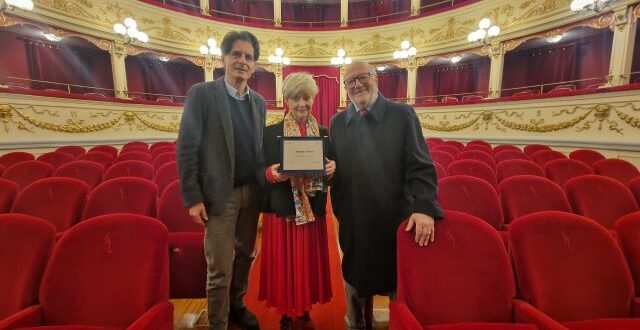 Chieti. Un riconoscimento all’attrice Milena Vukotic per «la sua straordinaria carriera» è stato consegnato dall’ingegnere Giustino Angeloni, presidente della “Deputazione Teatrale Teatro Marrucino” e dal maestro Davide Cavuti, direttore della “Stagione di Prosa” del Teatro Marrucino.