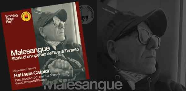 Domenica 23 marzo 2025 a Pescara presso il teatro Cordova (Viale Giovanni Bovio, 446) si terrà la presentazione del libro di Raffaele Cataldi “Malesangue”, un nuovo appuntamento del Working Class Fest organizzato insieme all’associazione Per il clima fuori dal fossile.
