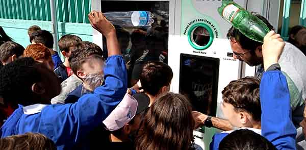 Tanto entusiasmo per gli alunni della scuola, incuriositi dal funzionamento del macchinario: le bottiglie vanno inserite all’interno di un cilindro dotato di rulli in grado di ruotarle e leggere il codice sull’etichetta per sapere se la bottiglia è PET. In alternativa, il dispositivo ne riconosce la forma: per riuscirci è collegata in rete a un archivio di forme e tipologie. Le bottiglie, dunque, vanno inserite senza schiacciarle: ci pensa successivamente il dispositivo, che è in sostanza un compattatore, a ridurle per occupare il minore spazio possibile. All’incirca vi si possono depositare circa 1000 pezzi (dipende dalle dimensioni delle bottiglie inserite). Una volta riempito, il Mangiaplastica invia un alert mail alla società gestore, Ecoreversa, che provvede a svuotarlo. “La plastica” ha detto il sindaco Chiara Trulli agli alunni “è il principale nemico del nostro pianeta. Voi ci aiuterete il più possibile a eliminarla, anche attraverso il Mangiaplastica. Ringrazio l’assessore Stefano Burrani, consiglieri Agustin Karaci e Alberto Bartoli e la preside Nicoletta Paolini per la loro collaborazione”. Paolini ha ricordato agli alunni il loro compito all’interno del comitato Ecoschool, che si è riunito nel pomeriggio proprio per raccogliere il parere dei ragazzi sulle azioni da mettere in campo per garantire che il pianeta sia sempre più pulito. “Voglio lasciarvi solo questa frase” ha detto l’assessore Burrani: “più riciclo, meno inquino”. Ha poi annunciato l’arrivo di altri dispositivi Mangiaplastica a Spoltore, a cominciare da Villa Raspa.
