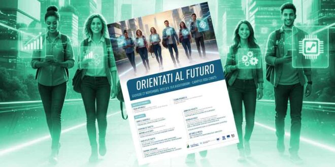 Chieti -Torna a Chieti “Orientati al futuro”. L’evento, giunto alla sesta edizione, è dedicato all’orientamento degli studenti delle quarte e quinte superiori. L’appuntamento è per giovedì 27 novembre, alle ore 10, presso l’auditorium dell’Università “G. D’annunzio”. Il format, ideato da Confartigianato Chieti e dallo sportello d’informazione comunitaria Europe Direct Chieti dell’Università G. D’Annunzio, insieme a Regione Abruzzo e Camera di Commercio Chieti-Pescara, rappresenta una forma innovativa di orientamento per i ragazzi che si apprestano a terminare gli studi.