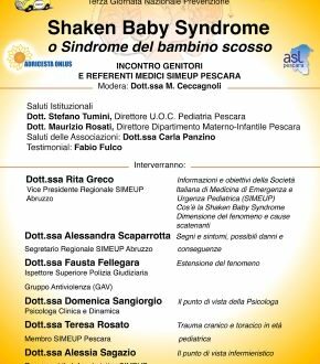 L’appuntamento rientra nelle Giornate nazionali di informazione e prevenzione della Sindrome del bambino scosso promosse in tutta Italia dalla SIMEUP, Società italiana di medicina di emergenza e urgenza pediatrica, contro il maltrattamento infantile. L’obiettivo è informare sui pericoli della sindrome e sulle modalità di prevenzione. La Shaken Baby Syndrome è infatti una grave forma di trauma cerebrale che deriva dallo scuotimento violento di un neonato, spesso come reazione al pianto inconsolabile, con possibili danni e conseguenze rilevanti.