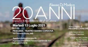 DOMENICA 11 LUGLIO ORE 18 ASSEMBLEA DI MOVIMENTO PARCO VILLA SABUCCHI – PESCARAMARTEDÌ 13 LUGLIO ORE 21 SPETTACOLO TEATRALE“20ANNI- CRONACHE DI INIZIO MILLENNIO DAL G8 DI GENOVA” TEATRO GIANNI CORDOVA – PESCARA Pescara – Vent’anni fa a Genova si incontrarono migliaia di persone, gruppi, organizzazioni, comitati, italiani e internazionali, per contestare i grandi del G8, servi politici di un capitalismo liberista, …