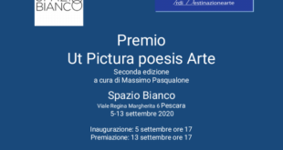 Pescara. Il presidente di giuria della seconda edizione del premio Ut pictura poesis Arte, Massimo Pasqualone, comunica la graduatoria stilata dalla giuria, composta da Gino Palone, Maria Basile, Eugenia Tabellione, Giustino Massucci, Carlo Gentili, Gisella Bianco, Lucrezia Di Francesco, Daniela Ricciardi, e invita il 13 settembre alle 17 per la cerimonia di premiazione presso la Galleria Spazio Bianco di Pescara: …
