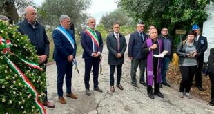 La città di Pescara e il Comune hanno ricordato questa mattina i martiri dell’eccidio avvenuto a Colle Orlando il 13 ottobre 1943, quando tre cittadini innocenti, Carlo Alberto Di Berardino, Marco Di Giacomo e Giuseppe Mancini, furono trucidati dai nazisti. Il sindaco Masci, assieme al presidente del consiglio Antonelli, al vicesindaco Gianni Santilli e al Prefetto Di Vincenzo, alle autorità …