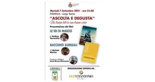 Pianella – Ascolta e Degusta” Un Buon Libro un Buon Vino è l’evento culturale organizzato dalla consigliera comunale Anna Bruna Giansante, con il patrocinio del comune di Pianella, per martedì 7 settembre alle ore 21.30 a Pianella, presso. il Largo Teatro. Giansante “Organizzare iniziative culturali, storiche e sociali è indispensabile. Dobbiamo valorizzare gli angoli del nostro paese. Lo faccio con …