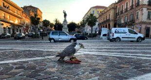 A Giulianova falconieri in azione per scacciare i piccioni dal centro storico