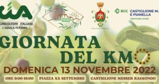 Castiglione Messer Raimondo – Un evento per valorizzare e promuovere l’olio EVO monovarietale Castiglionese: è la “Giornata del km0”, iniziativa promossa dalla Pro Loco con il patrocinio del Comune di Castiglione Messer Raimondo, in collaborazione con la Cia-Confederazione italiana agricoltori di L’Aquila-Teramo. L’appuntamento è per domenica 13 novembre, in piazza XX Settembre, a Castiglione. L’evento prenderà il via alle ore 9:00, …