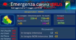 Leggi ancora »Coronavirus: Abruzzo, 25 nuovi casi, 7 decessi – dati aggiornati al 7 maggio