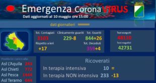 Leggi ancora »Coronavirus: in Abruzzo si registrano 17 nuovi casi e 4 decessi – dati aggiornati al 10 maggio