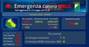 Leggi ancora »Coronavirus: in Abruzzo 12 nuovi casi, 5 i decessi – dati aggiornati al 13 maggio