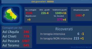 Leggi ancora »Coronavirus: in Abruzzo oggi 9 nuovi casi, 4 i decessi – dati aggiornati al 14 maggio