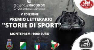 Ripa Teatina. L’attesa è finita, ci siamo!!!! Torna la quarta edizione del Premio Letterario Storie di Sport, appuntamento imperdibile per gli appassionati di sport e di scrittura, organizzata dalla Scuola Macondo e dal Festival Rocky Marciano. Come noto, al fortunatissimo ed apprezzatissimo Premio Letterario, da 4 edizioni uno dei punti fermi del Festival Rocky Marciano che si tiene in luglio …